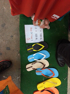 It is a yearly affair for us to visit a e particular slipper shop at Chatuchak to replentish our footware. The rubber slippers are very comfortable. This year, they start making birkenstock-like sandals too. For lunch, we headed to a small bar tucked in a corner that serves seafood paella and ice cold beer - perfect for the humid weather. The chef dances to the music as he cooks the paella. The jazzy music and cooking show draws ample crowd.